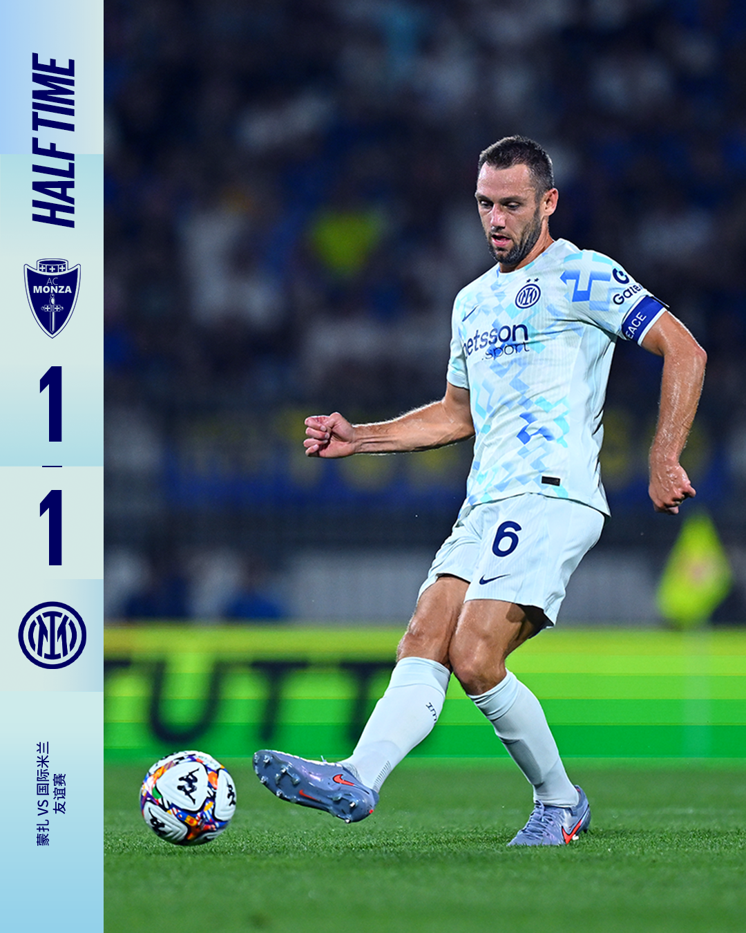 上半场比赛放纵,咱们暂时1比1战平蒙扎。