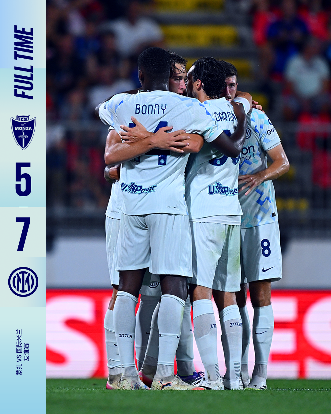 随后过问点球大战,最终蓝黑军团点球大战7比5慑服蒙扎!