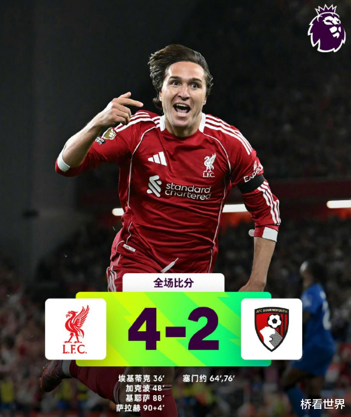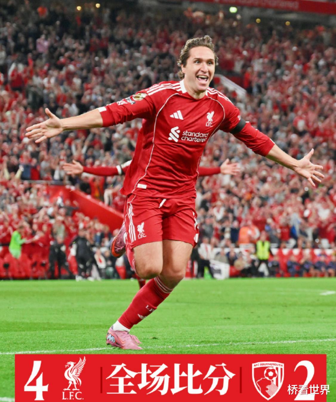2025-26 赛季英超联赛于安菲尔德球场拉开战幕,利物浦在一场跌宕周折的揭幕战中,凭借费德里科・基耶萨和穆罕默德・萨拉赫的终场进球,4-2 打败伯恩茅斯,用一场繁荣东谈主心的胜仗开启卫冕征途。比赛不仅见证了新援的惊艳亮相,更承载着赤军对前球员迪奥戈・若塔的深刻惦记,同期也因一则种族抱怨事件激勉无为柔软。