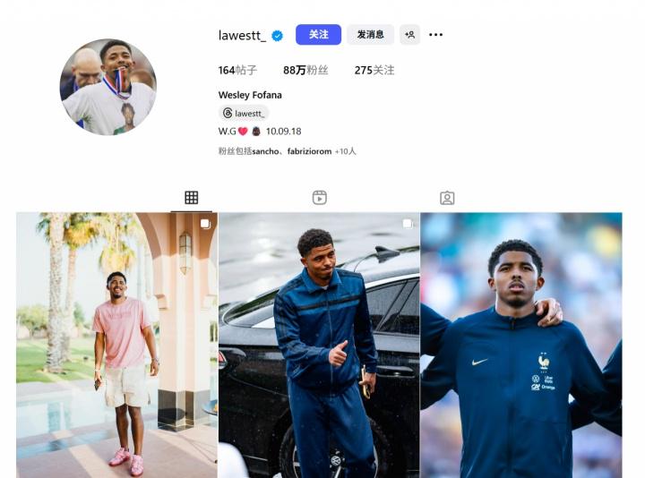 直播吧8月20日讯 切尔西后卫韦斯利-福法纳删除了总共与切尔西联系的ins本色,这激勉了外界的崇尚与筹谋。
