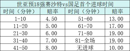 从上表中不错看出,比赛的首粒进球出刻下前很是钟的赔率为1赔4.50,在通盘的时刻段选项中是最低的,这也预示着沙特进球的出现似乎无须恭候太久。那么,是谁更可能先进球呢?在另一个选项中,有名机构给出了成见。首个进球球队的选项中,沙特的赔率为1.30,而作念客的中国赔率为4.00,是以沙特开场后发制东谈主的可能性更大。