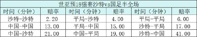 从表中不错看出,沙特半场赢-全场赢的赔率为1赔2.20,半场平局临了是沙特主胜的赔率为1赔4.00。而出现半场逆转的场地,赔率鉴别是1赔21和1赔41,也预示着这种情况发生的可能并不大。而半场平局-全场平局也唯有6.00,是以中国男足能否在上半场扛住沙特的弥留关于整场比赛效果来说,可谓至关要紧。