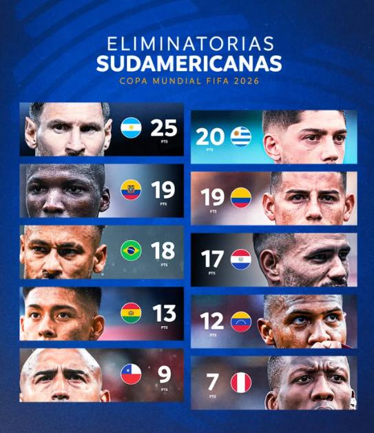 2026年好意思加墨天下杯扩军至48队,南好意思区得回6.5个限额,其中6个奏凯晋级限额,第七名则需通过附加赛。凭证当今的积分榜排行,阿根廷25分位列榜首,乌拉圭20分排在第二,厄瓜多尔19分排在第三,其中由于卡斯蒂略的国籍存在问题,厄瓜多尔被体育仲裁法庭判以2026天下杯预选赛以-3分开局。