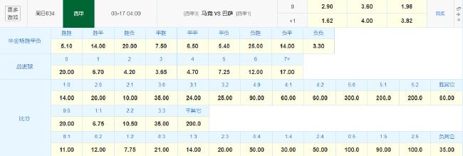 竞彩官方给本场西甲榜首大战开出2.90(马竞胜)、3.60(平局)、1.98(巴萨胜)胜平负组合,关于西甲领头羊巴萨予以本年以来17场不败出色的气象题材数据守旧。比分竞猜玩法方面,两边1-1战平比分赔率最低为1赔6.75,巴萨客场2-1赢球为1赔7.75紧随自后,马竞主场2-1赢球为1赔10.00,两边2-2战平为1赔10.50,巴萨客场1-0和2-0取胜永诀为1赔11.00和12.00,举座来看关于巴萨略有上风倾向。