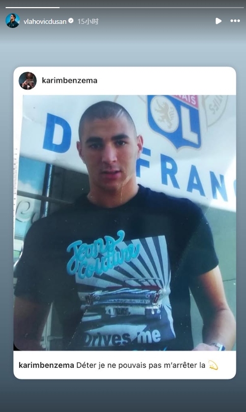 07月23日讯 弗拉霍维奇在社媒转发了一个本泽马旧年的ins动态。