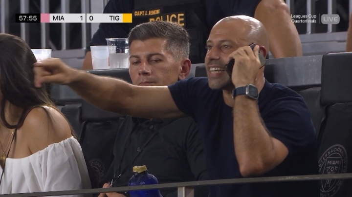 在北好意思定约杯1/4决赛,迈阿密海外2-1投降老虎大学。马斯切拉诺在上半场界限后抗议裁判并吃到红牌,但下半场他坐在距离球场很近的看台上,并通过手机带领球队。马斯切拉诺当先暗意:“我坐的处所相宜轨则,那亦然看台的一部分。仅仅很偶合,迈阿密海外主场的看台距离球场很近,而我思要尽可能围聚球场,仅此辛苦。”