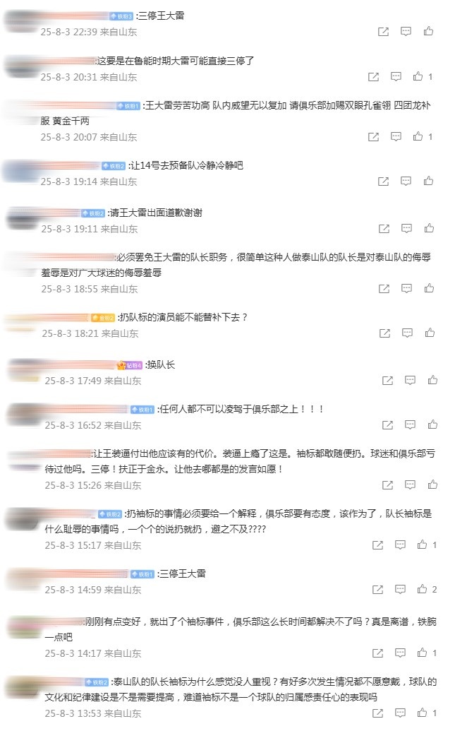 队长袖标酷爱酷爱要紧!泰山队赛后一天,球迷捏续声讨王大雷
