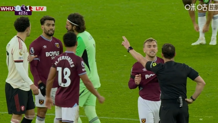 11月30日讯 英超第13轮,西汉姆联vs利物浦,帕奎塔起火判罚连吃2黄被罚下。