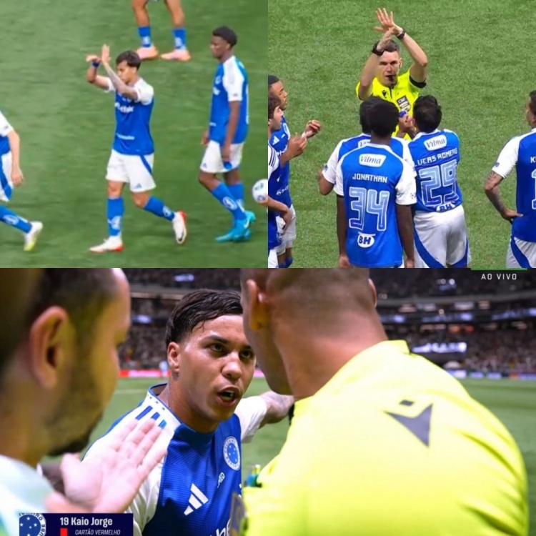 在一场克鲁塞罗对阵米内罗竞技的巴甲联赛中,凯奥-若热在对方扳平比分后,向主裁判作念出了“戴手铐”的手势。主裁判最先并未察觉,但经视频助理裁判教导后,径直向他出示红牌将其罚下。