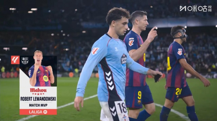 献艺帽子戏法!西甲官方:莱万当选塞尔塔vs巴萨的全场最好