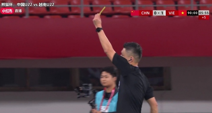 11月12日讯 U22国足vs越南终末时辰U22国足角球,鲍世蒙拔掉角旗杆吃到黄牌,然后把杆子插回。