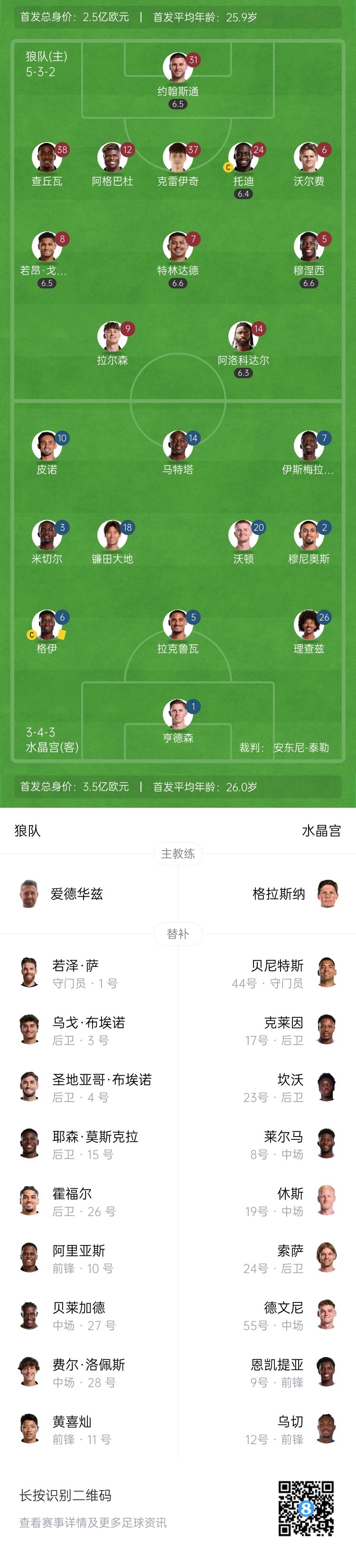 伤停补时1分钟。上半场比赛截至,狼队0-0水晶宫。