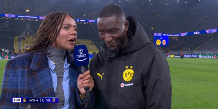 在多特4-0驯顺比利亚雷亚尔之后,吉拉西采纳亚马逊电视台记者卡亚娜·弗里曼的采访。当记者用法语发问前两个问题时,这位几内亚弓手也以法语作答。(注:几内亚官方讲话是法语)