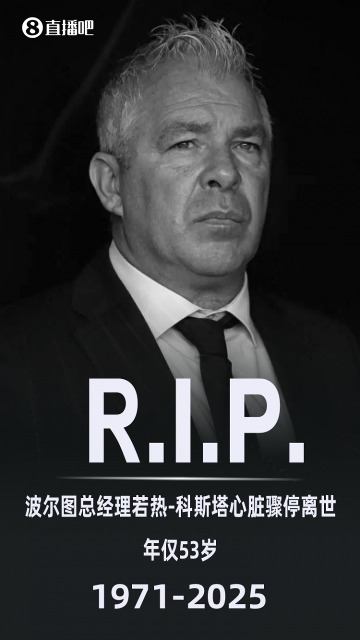 R.I.P.🙏波尔图总司理若热-科斯塔突发腹黑骤停离世,年仅53岁