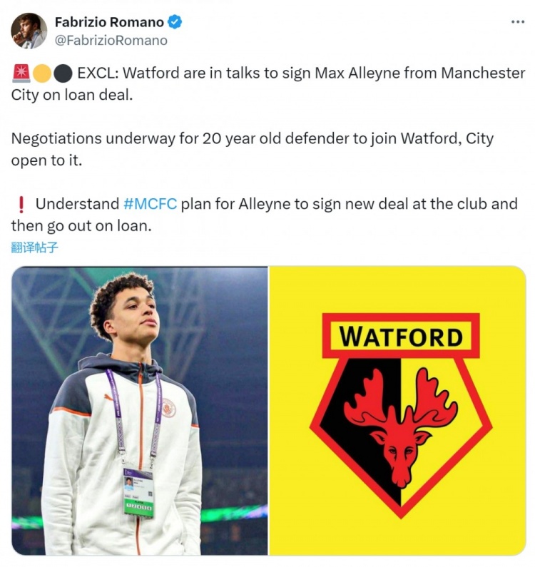 罗马诺清醒,沃特福德突出租出阿莱恩,已就此伸开酌量,曼城对这笔交游抱绽放气魄,策画与阿莱恩续约,然后将其外租。