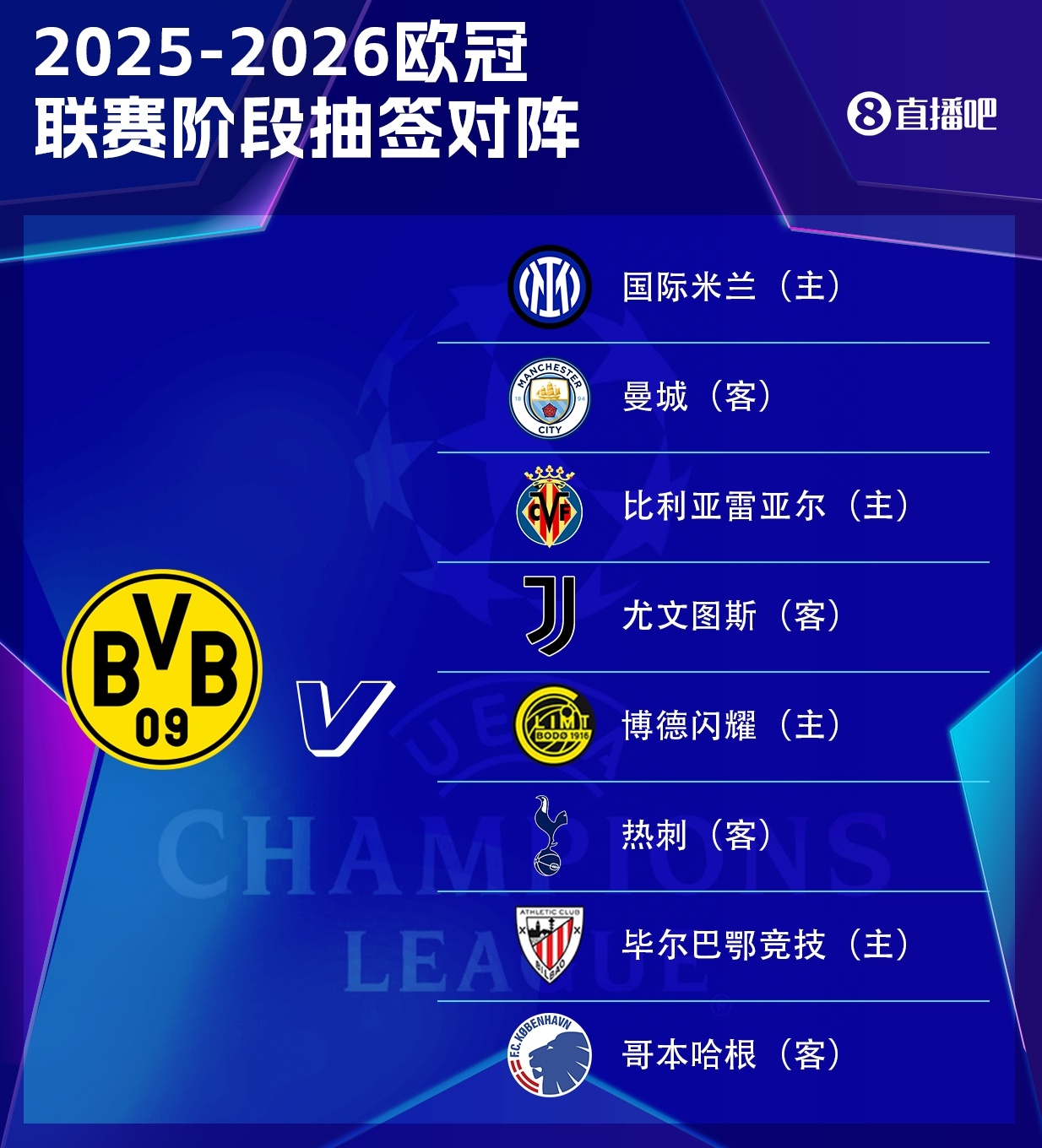 难度拉满!多特欧冠赛程:开局迎尤文&毕巴,收官对热刺&国米