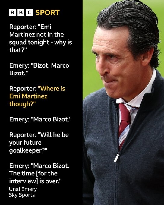赛前,维拉主帅埃梅里曾终止回报大马丁的干系问题,一齐以“比佐特”作答。