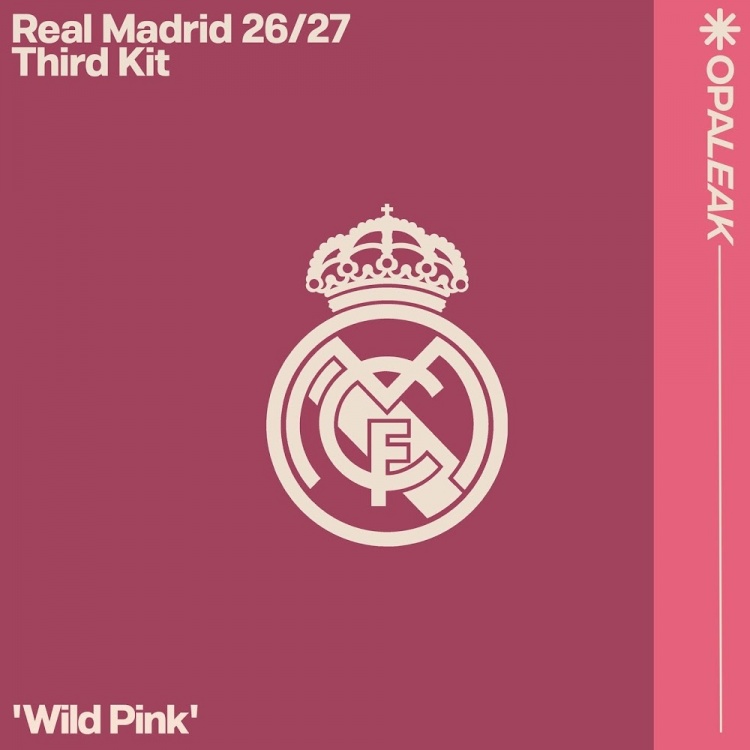 皇马26/27赛季第三客场球衣琢磨:主体为粉色,融入拉丁好意思学元素