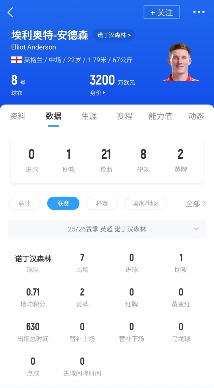 现年22岁的安德森于2024年以3500万镑从纽卡转会至诺丁汉丛林,如今已成长为英超最正经的新星之一。