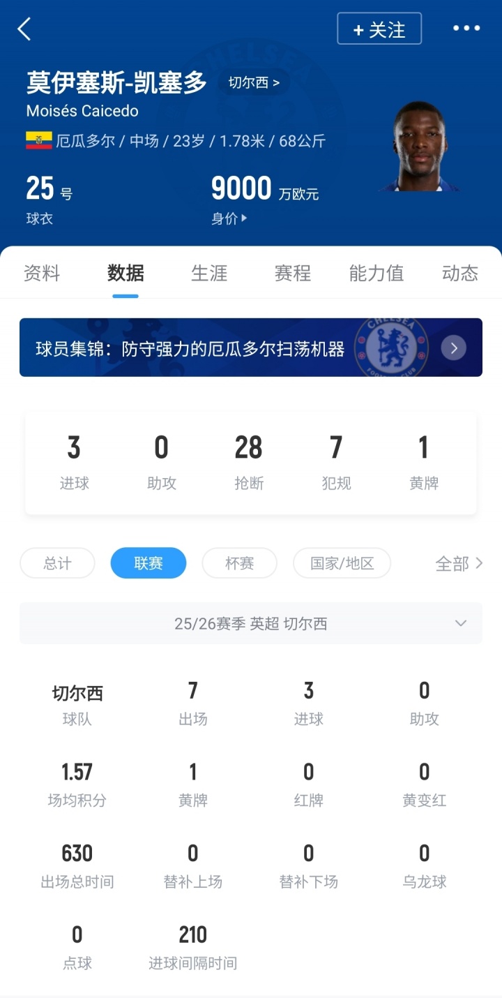 10月15日讯 德转将于17日更新英超球员身价,今天他们预热了切尔西中场凯塞多的身价变动。