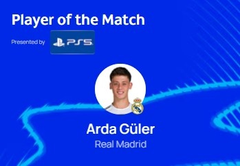 7要道传球!欧足联官方:居莱尔当选皇马1-0尤文一役全场最好