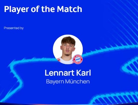 本场比赛拜仁17岁小将卡尔阐扬出色,打进球队首粒进球,赛后他也当选欧冠官方评比出的本场最好球员。