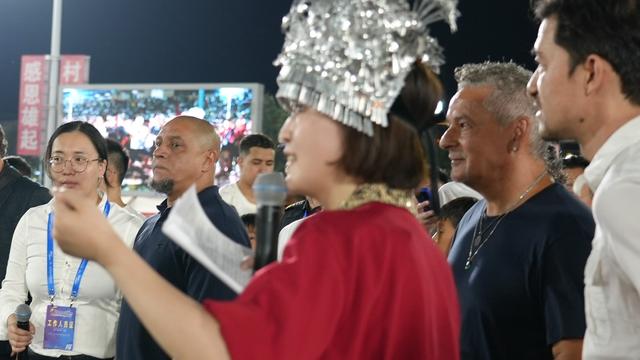 罗伯特·巴乔(右二)与罗伯托•卡洛斯(左二)在“村超”现场